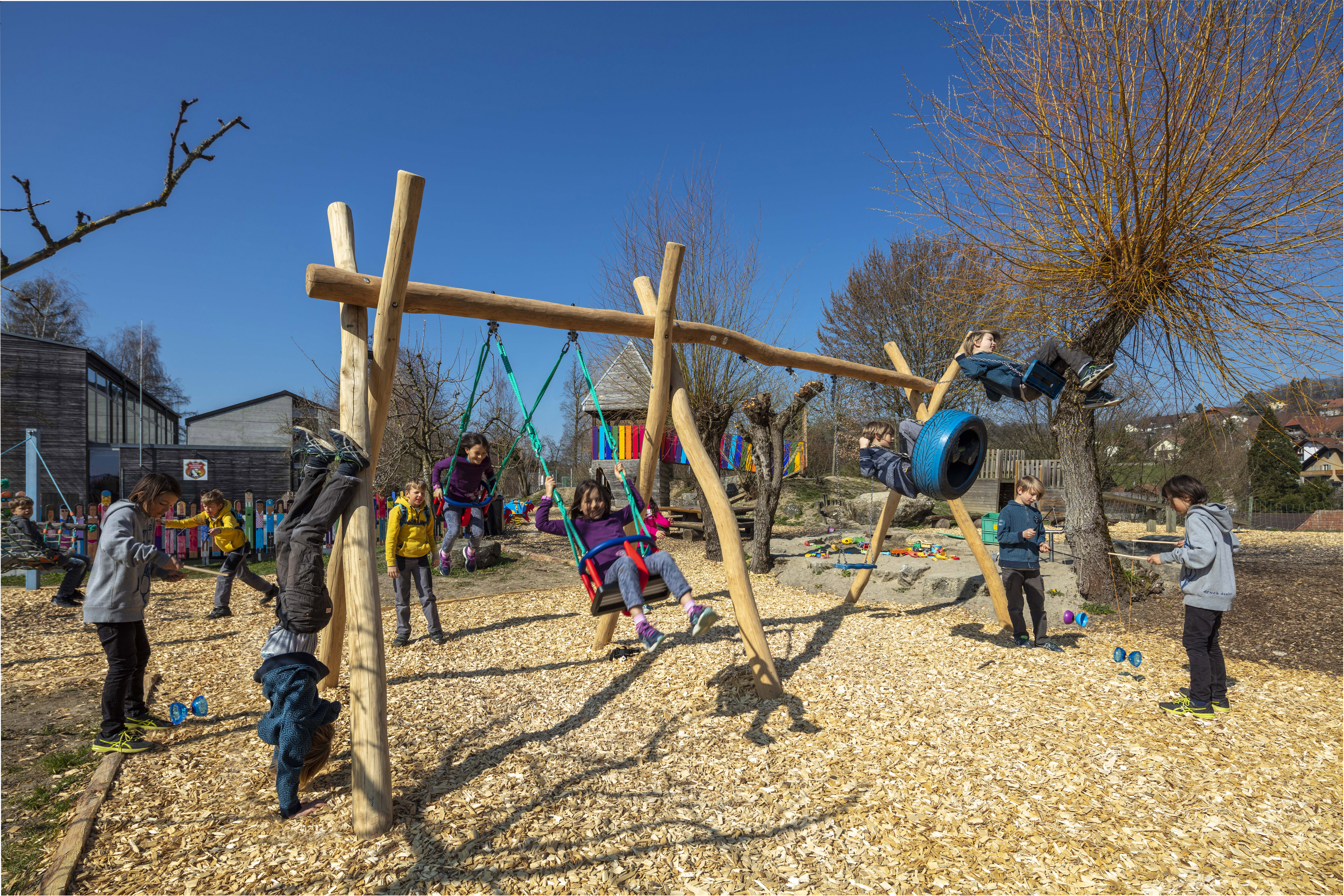 Spielplatz Jäiss Fotos: Stefan Weber, Fotograf, Hungerberg 9, Jens Mit viel Herzblut engagieren sich die Mitglieder der IG Spielplatz Jäiss zusammen mit der Gemeinde Jens für die Instandhaltung des Spielplatzes beim Schulhaus Oberfeld.